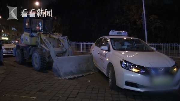 1月2日晚上,的哥胡师傅开车通过贵阳市惠隆路时,一辆无人驾驶的铲车顺着斜坡溜了下来,和他的出租车撞了个正着。