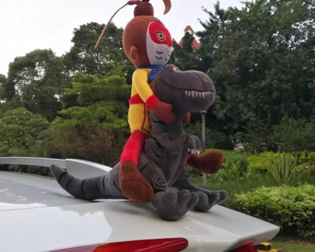 有一位车主在自己的车顶也放上了一个娃娃,不过这个娃娃却是挺别致的,车主放了一个孙悟空骑着恐龙的玩偶,不过交警见了之后直接是罚款了200元,这位车主被罚款之后十分的不服气反诘交警,我放个孙悟空就罚200,方才一辆保时捷放了7个葫芦娃,你怎样不罚呢?
