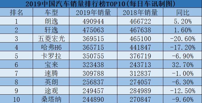 作为上汽群众自主研制的桑塔纳,在2019年的体现差强人意。尽管进入了榜单前10,但在2018年基础上大幅跌落9.6%。只是处于榜单结尾的方位,又面对如此的跌落量,估计在2020年将很难进入榜单前10了。