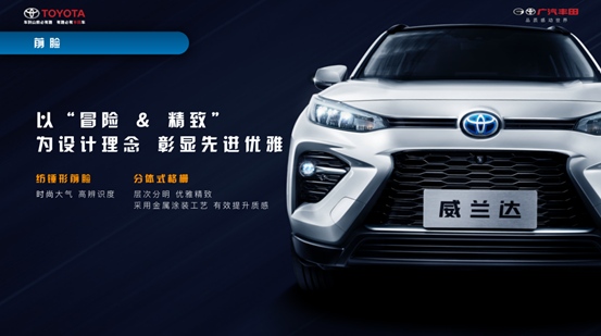 在外形设计上,威兰达的设计理念是“Adventure & Refined(冒险&精美)”。在2017年的洛杉矶车展上,丰田初次推出了面向未来的SUV概念车,叫Future Toyota Adventure Concept,简称FT-AC。这款概念车表明晰丰田未来SUV的发展趋势,从外形来看,它具有更强硬的强悍外观。威兰达相同具有了这款概念车的设计理念:它的外形设计保留了许多的切削式多边形造型;为了与汉兰达相同具有“兰达系列”的特性,威兰达在前脸设计上融入了许多高雅精美的造型设计。