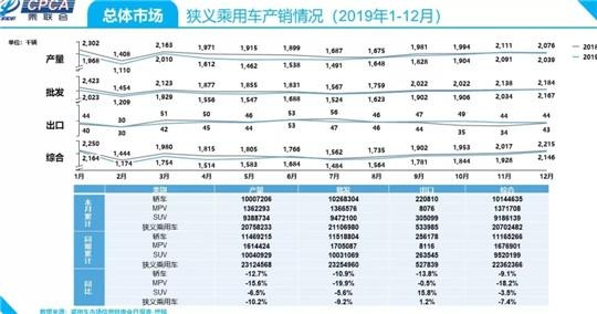 2110.69万辆,-9.2%,这是乘联会发布的2019年全年狭义乘用车批售销量的最终成绩。