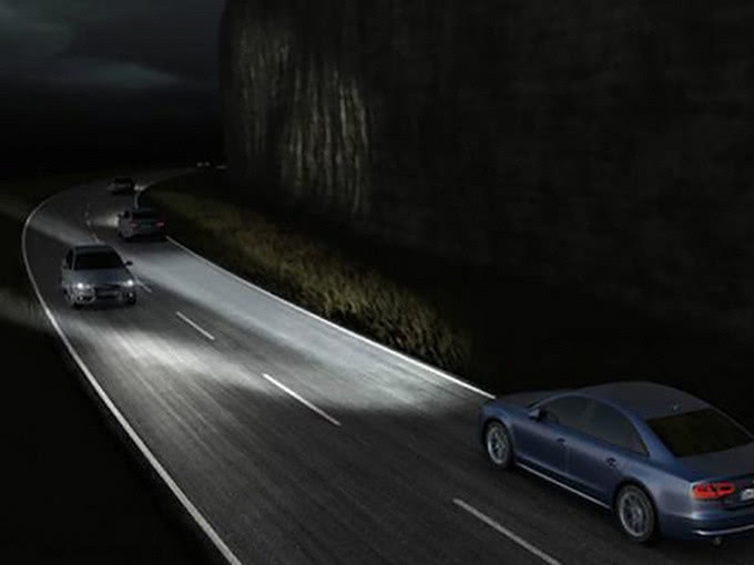 这儿咱们以奥迪的矩阵式LED大灯技能举例。
