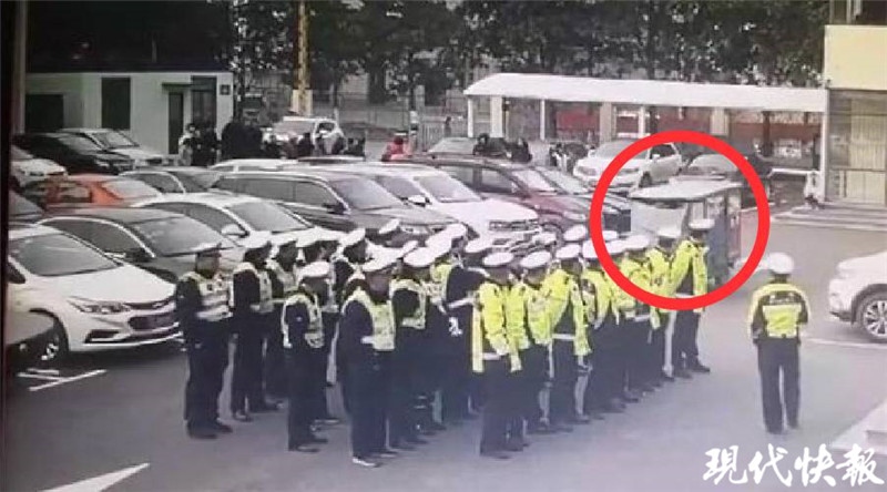 △嫌疑人匡某酒驾冲进交警队大院,把一众正在开晨会的警员看呆了。