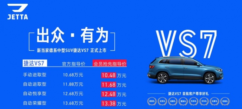 自尝鲜上市以来,捷达VS7就走入顾客的购车视界。3月20日,捷达VS7正式上市,共推出4款装备车型,价格10.68-13.68万元。一起厂家还宣告,在5月31日前注册成为捷达会员,购车可享受抢先指导价,体现出对顾客更多诚心。别的,为问候斗争在抗疫一线的医护人员,捷达品牌还特别为他们供给了关爱大礼包。