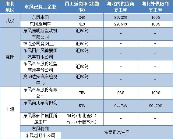 不过,在武汉的春风英菲尼迪、春风雷诺、神龙轿车等乘用整车企业根本还处于停摆状况,复工率十分低。
