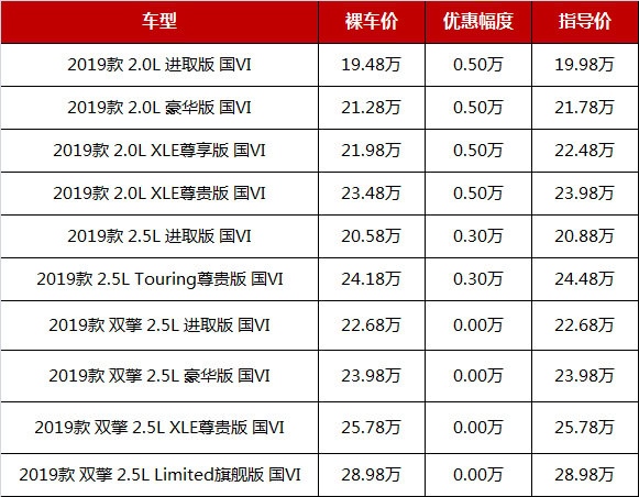 丰田亚洲龙上市后一直都坚持不错的销量,本年在新冠肺炎疫情的影响下销量受到了冲击,但一季度依然卖了14851辆,销量超过了日产天籁。现在亚洲龙的终端优惠不大,日前购车网修改从一汽丰田广州经销商处了解到,亚洲龙最高优惠5000元。以下是亚洲龙在广州区域的终端参阅价格: