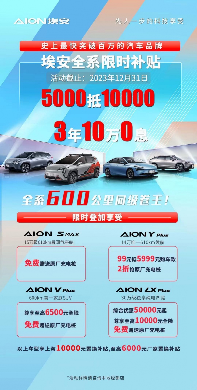 追求简约与运动风格?AION S MAX提供最强的610km纯电续航,满足你对生活与远方的无限向往。其外观设计简洁、运动,内饰更是体现了豪华游艇般的感受。在触觉和听觉享受上更是独树一帜,采用了比利时Premium音响,在车内可尽情享受音乐氛围。现在,AION S MAX限时优惠5000抵10000,3年10万免息,更有免费充电桩赠送,为你带来尊贵出行新体验。